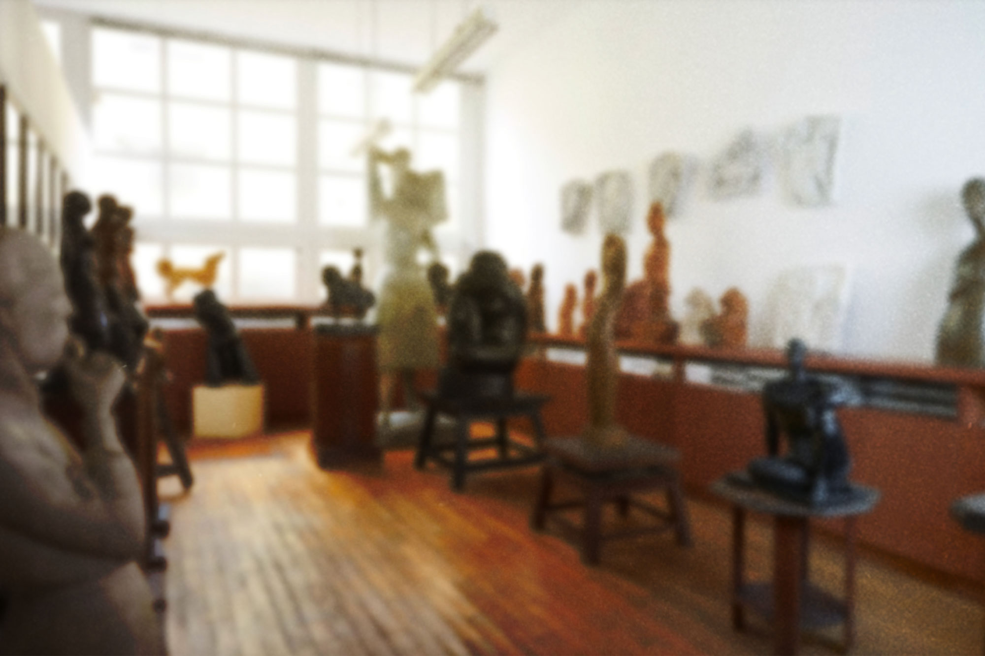 L’identité créée pour le lieu est à son image : un écrin sobre et lumineux, valorisant la collection de l’artiste. Sa structure apparente soutient les œuvres et les encadre à la manière des étagères de l’atelier.