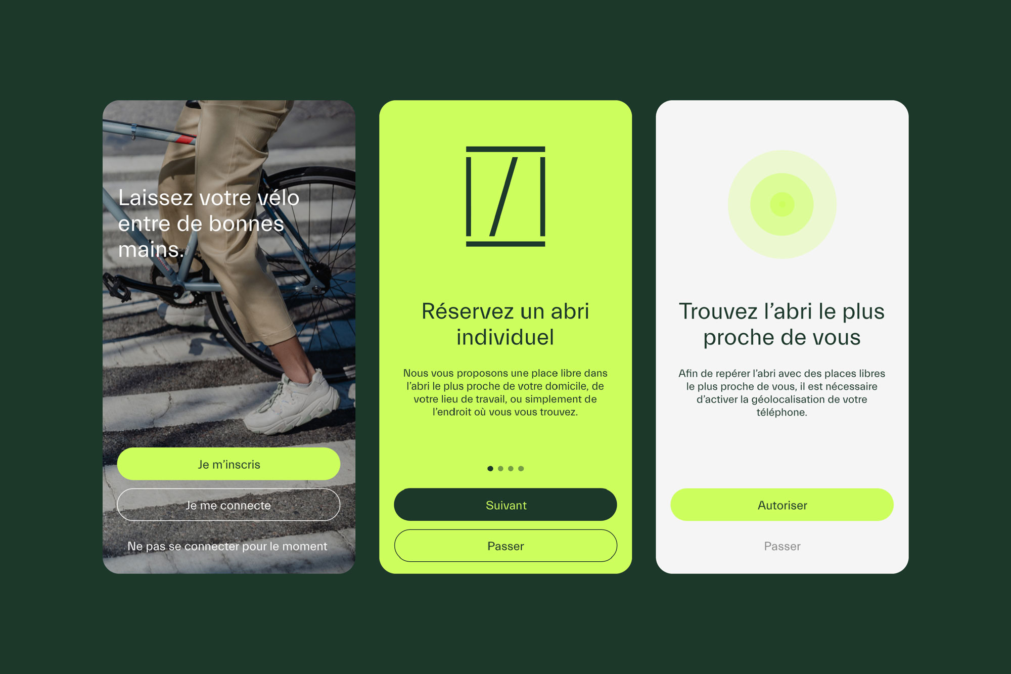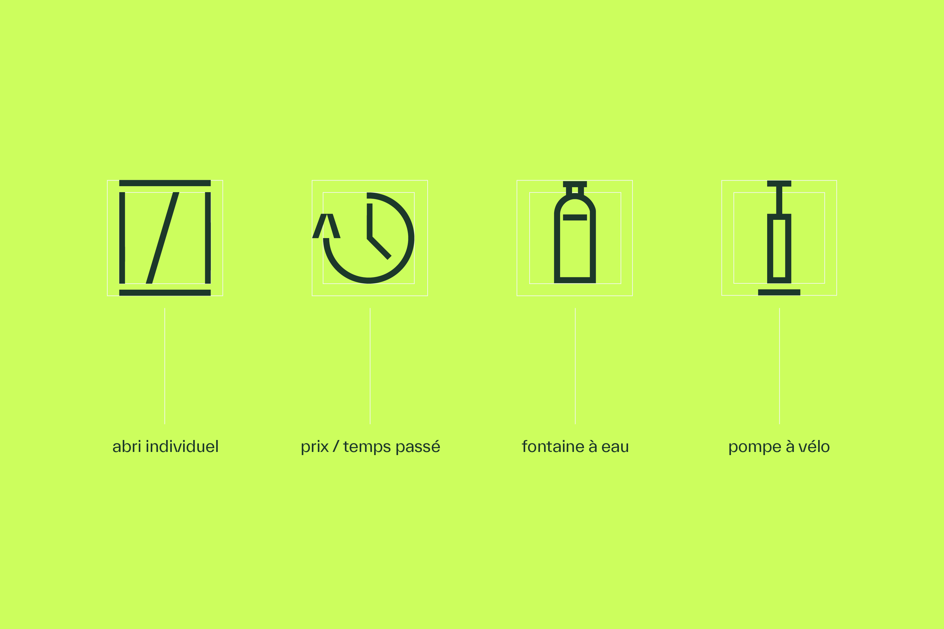 L’identité visuelle prend pour point de départ la notion de sécurité avec un jeu d’ouverture/fermeture dans les A du logo. La répétition des formes crée également une dynamique et une harmonie qui illustrent l’efficacité de la technologie des abris et leur capacité d’intégration à l’espace urbain.